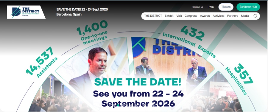 The District Real State Investors Europe event, organized by Fira Barcelona, will take place from 22nd to 24th September at the Gran Via venue of Fira Barcelona.